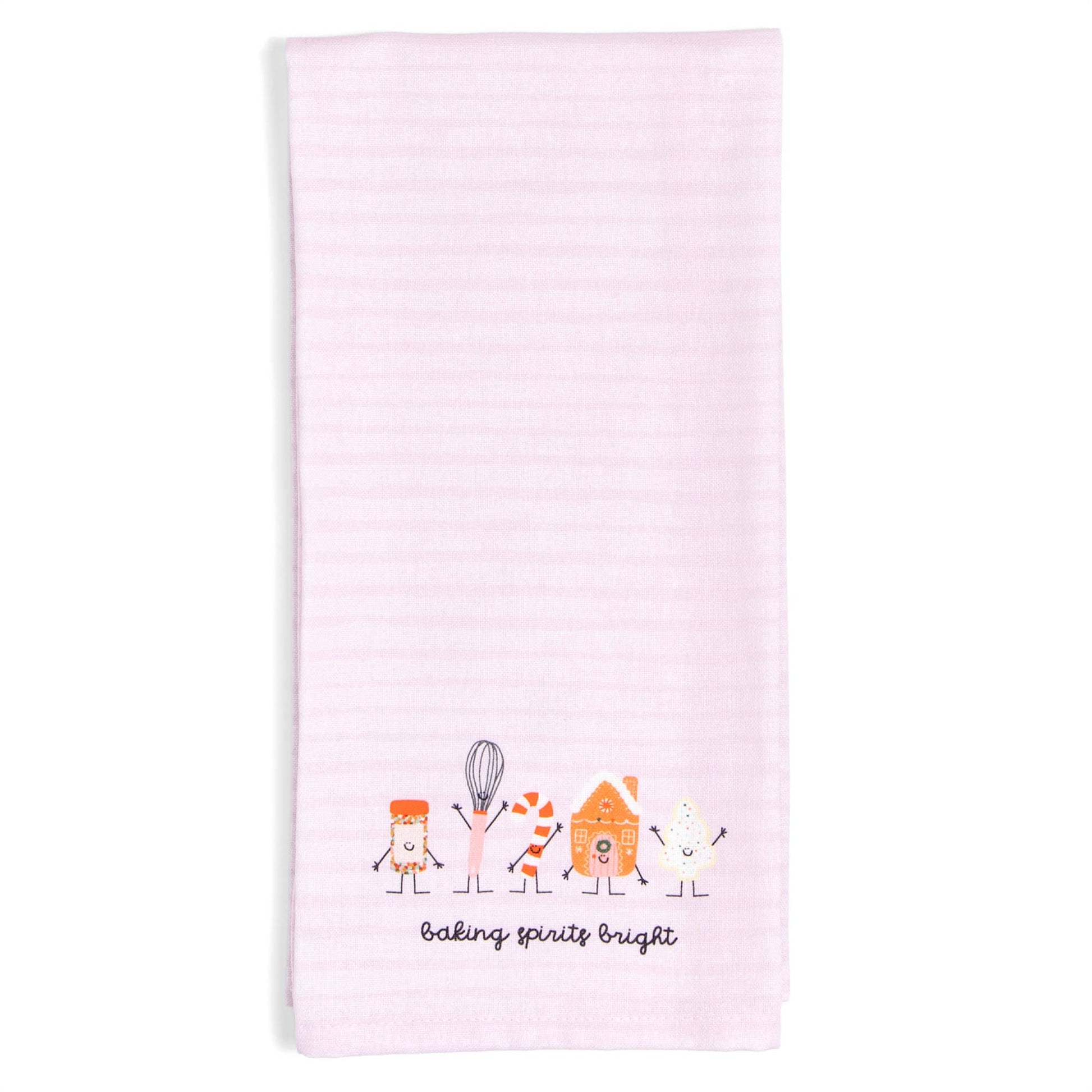 Whip up some holiday cheer with the Baking Spirits Bright Christmas Tea Towel! Perfect for cookie lovers and festive bakers, this charming kitchen towel features a whimsical embroidered design of smiling gingerbread cookies, candy canes, and baking essentials.