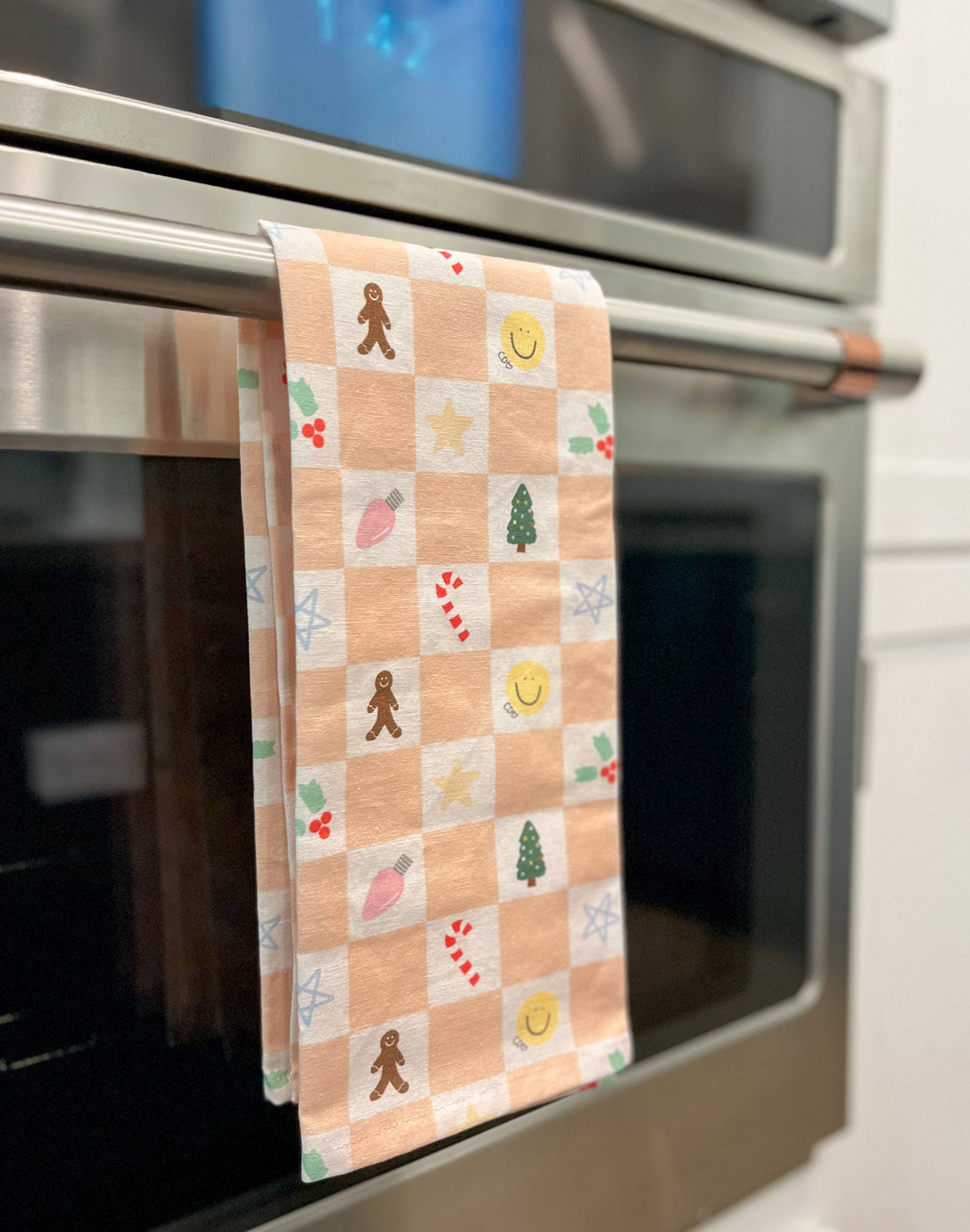 Celebrate the holiday season in style with this festive Christmas Tea Towel! Super soft and absorbent, it’s perfect for holiday baking, kitchen prep, or adding a cheerful touch to your space. Featuring hand-drawn doodles of Christmas trees, gingerbread men, candy canes, holly, lights, stars, and smiley faces, it’s a playful and charming kitchen accessory everyone will love.