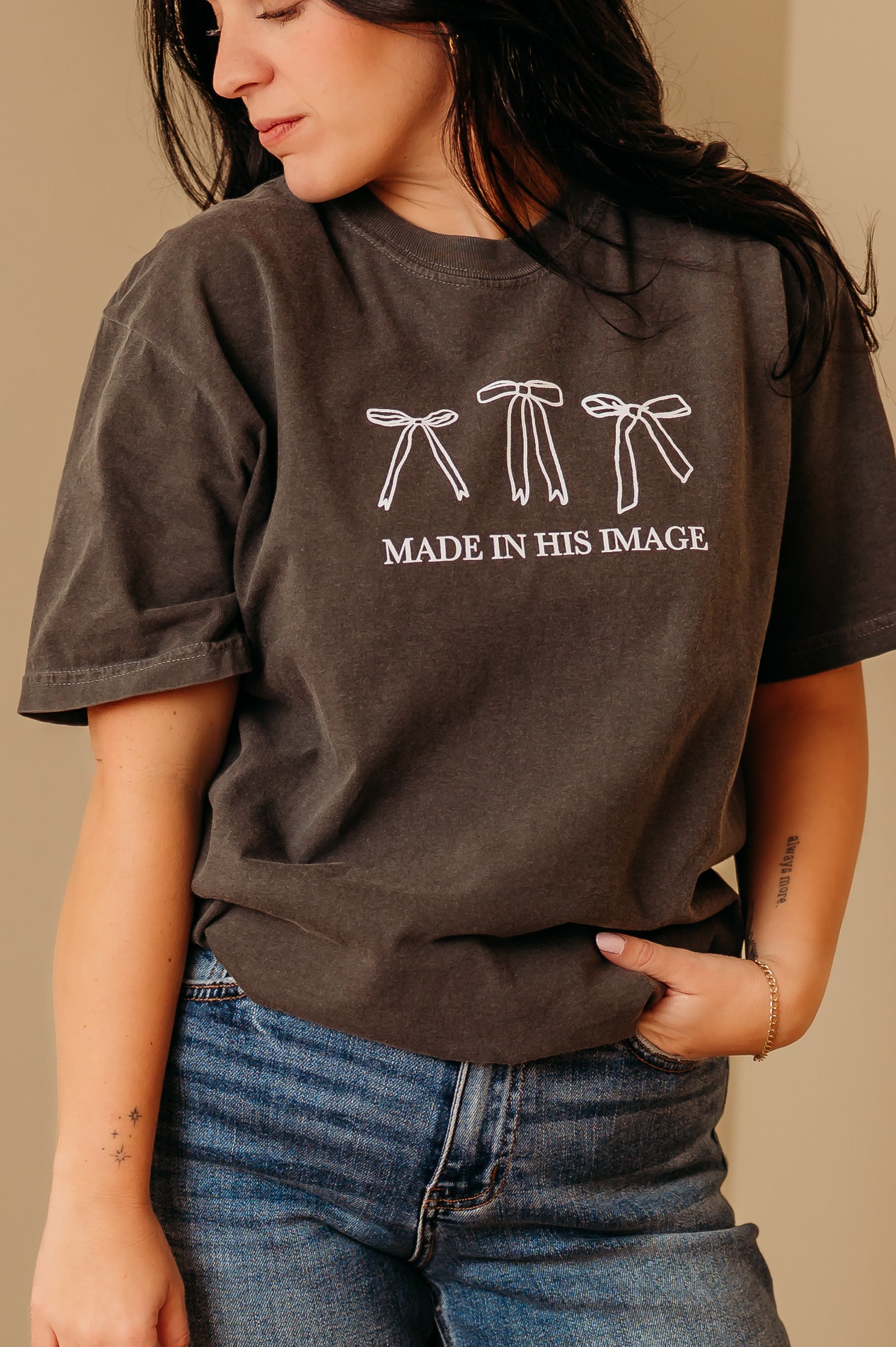 This soft, vintage-inspired tee is made for everyday comfort and timeless style. Crafted from heavyweight 100% ring-spun cotton, it’s pigment-dyed for that perfectly lived-in look that only gets better with each wash. The “Made in His Image” design pairs effortlessly with your favorite jeans or shorts for a simple, meaningful statement.